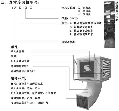 一。 概述 SLF系列濕簾冷風機是本廠引進歐美國家新技術(shù)和上海交通大學共同開發(fā)的綠色環(huán)保降溫設(shè)備。由特殊過濾材料制成的濕簾(其熱交換面積為表面積的100倍)。低噪聲風機,水槽,浮球閥,放水閥,布水器等組成。專用的加濕系統(tǒng)用電動水泵不斷的給濕簾加水加濕,通過風機生產(chǎn)的高性能,低噪聲節(jié)能風機,使室外的空氣流經(jīng)濕簾進入室,內(nèi),。由于濕簾上水的蒸發(fā)帶瞳大量潛熱,迫使流經(jīng)濕簾的空氣可降溫5-9攝氏度(干燥地區(qū)右棕10-15攝氏度),空氣愈干熱,降溫幅度愈大。同時山于水的蒸發(fā)也加大了空氣的濕度,其相對濕度可達75%左右??蓮V泛在紡織,針織等行業(yè)使用,不但可以降溫改善工人工作條件,而且能減少紡織過程中的斷絲率,提高紡織品的質(zhì)量。 二。濕簾冷風機主要優(yōu)點: 崗位降溫 調(diào)節(jié)溫度 利于環(huán)保 安裝維護便捷 相對干燥炎熱地區(qū) 相對濕度較大地區(qū) SLF系列濕簾冷風機分:底出風軸流式,底出風離心式,頂出風軸流式,頂出風離心式,側(cè)出風軸流式,側(cè)出風離心式,窗式軸流七種形式。 SLF-83A,B,C箱式軸流式冷風機外殼,出風口彎頭均采用玻璃鋼制作,也可用高強度的塑料材質(zhì)制作。 箱式軸流冷風機,箱式離心冷風機及窗式軸流冷風機,其外框采用鋁合金框架,彩鋼板或鍍鋅板面板。 冷風機電機采用防護等級為IP55的防水電機,使得設(shè)備使用壽命更長,性能更穩(wěn)定。 為滿足不同用戶的需要,本廠還備有鋁合金進風百葉,鋁合金出風調(diào)節(jié)百葉及鋁合金濾網(wǎng)供用戶選用,作為風機附件,用戶在訂貨時需明確指出。![]() 七。設(shè)備安裝 冷風機安裝于窗,墻之外,用管接頭與窗口或墻孔相接。冷風機出風口應(yīng)高上些,不宜直吹人體。安裝前,先用有鋼焊好托架,其參考尺寸,由安裝現(xiàn)場情況確定,并用四個M10膨脹螺釘和兩個M10穿墻螺栓固定??紤]到檢修時人進入機內(nèi)的安全,宜采用40-50的角鋼。 冷風機離墻的距離應(yīng)大于20cm。以免進入該側(cè)濕簾的氣流受阻。 冷風機通風方式一般有縱向通風氣流的過流斷面積小,風速大,死角面積很小,。在使用條件許可的情況下,應(yīng)該盡可能采用先進的縱向通風方式。 若采用管道式送風,送風口應(yīng)為可調(diào)式,風管重量不應(yīng)加在風機上,風管尺寸按現(xiàn)場情況確定。水管安裝時,采用鋁塑管,并應(yīng)安裝在室內(nèi),如水悉安裝在外墻,則就把鋁塑管用保溫材料包起來,以免在陽光曝曬水管而影響冷卻效果。![]() 八。使用及維護 SLF系列濕簾冷風機便用電源為380V/50HZ,應(yīng)設(shè)漏電保護斷路器。 漏電保護斷路動作時,必須由專業(yè)電工排除幫障后能運行。 冷風機啟動時應(yīng)檢查池內(nèi)有無紙屑,塵土等異物,并必須定期清除。 為防止濾網(wǎng)堵塞,應(yīng)定期清洗率合金濾網(wǎng)。 試運轉(zhuǎn)完畢后,必須蓋上頂蓋(檢修門)并上鎖,避免刮風吹落及人為事故。 保證池內(nèi)正常水位及濕簾的正常供水,發(fā)現(xiàn)濕簾供水不足或不均時,檢查是否缺水及管路是否堵塞,水泵運行是否正常。 遇到水外溢時應(yīng)立即檢查水位控制器是否正常。 冬季不用應(yīng)用時沖洗后將池水放干,并切斷電源,用裝紙包扎產(chǎn)品外部,以免風沙進入。 安裝水管時,在進水管總閥的后面安裝一個放水閥,當冬天不使用冷風機時,應(yīng)將管路上的水放干,免管路冰裂。 |